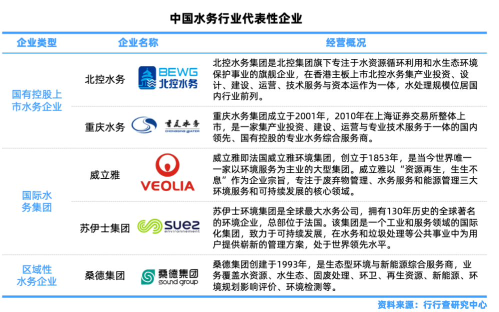大型國有水務企業(yè):占據(jù)國內(nèi)80%的供水業(yè)務,多為專業(yè)化水務環(huán)境綜合服務商,集投資、建設、運營、技術服務于一體。